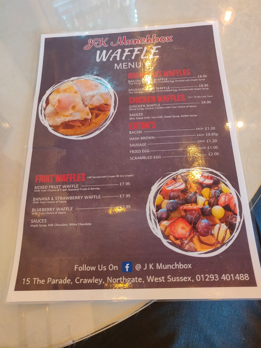 Welcome to Jk Munchbox, a delightful café nestled in Northgate, Crawley, where culinary creativity meets a warm, familial atmosphere. The menu is a treasure trove of temptations, featuring everything from scrumptious Fruit Waffles—like the light and fluffy Mixed Fruit and Blueberry Waffles—to hearty Chicken Waffles that offer a savory twist. For a delightful midday treat, indulge in the Hot Savoury Pasties like the classic Cornish Pasty or the flavorful Ham & Cheese Croissant.